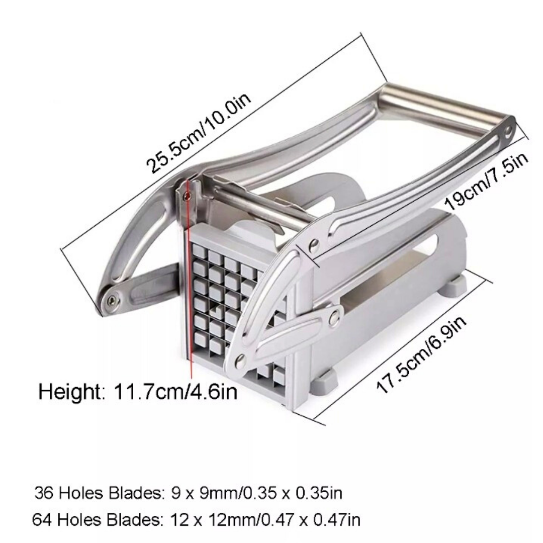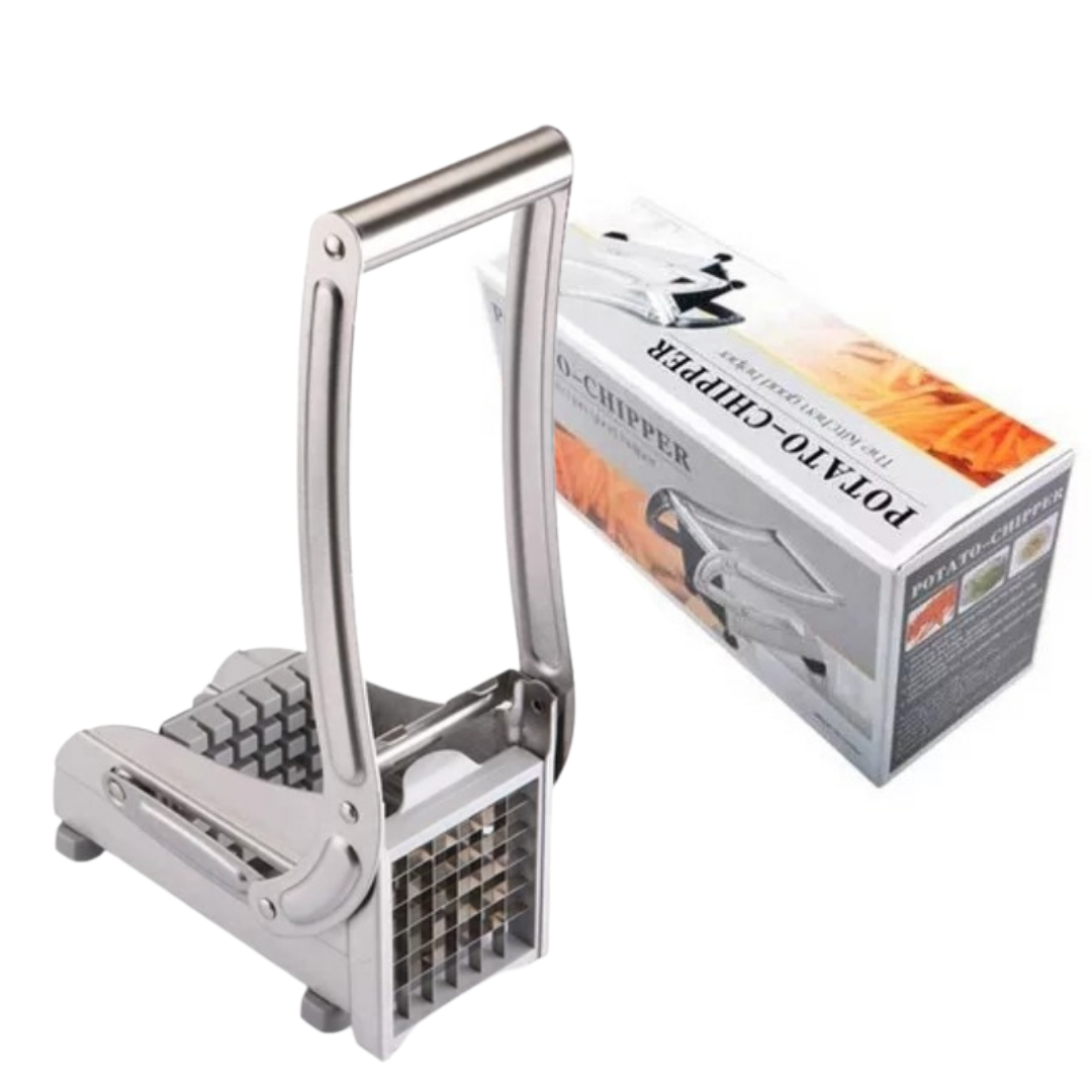 The Stainless Steel Potato Cutter and vegetable Slicer is a durable, multi-functional kitchen tool for quick and precise potato and vegetable chopping.